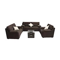 SILLA: TAPIZ: Montreal | COLOR: Moro | RELLENO: Espuma paraiso + Algodon + Elasticos | ESTRUCTURA: Madera tornillo + Cachimbo | ARMADO: No MESA: COLOR: Nogal | ESTRUCTURA: Madera tornillo + Mdf enchapado + Vidrio | ARMADO: No ACABADOS